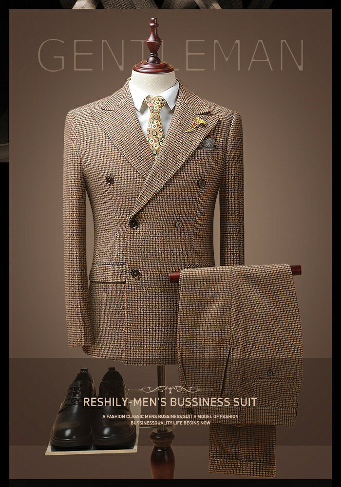 【送料無料!2021秋冬新作】スーツ メンズ ダブルスーツ 大きいサイズ セットアップ 3ピース カーキ 2つボタンスーツ ビジネススーツ おしゃれ スリム 長袖 通勤 男の子 40代 卒業式 結婚式 セレモニー 紳士 長袖 ジャケット ベスト ネクタイ