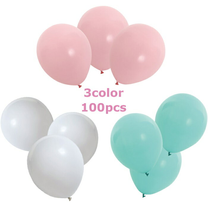 即日出荷 あす楽 【空気入れ付 割れにくい極厚バルーン 3色 計 100個 アクアエメラルド】ハンドポンプ バルーン セット 風船 飾り付け パーティー 記念日 誕生日 結婚式 100日祝い 飾り バースデー インスタ 飾り 白 緑 水色